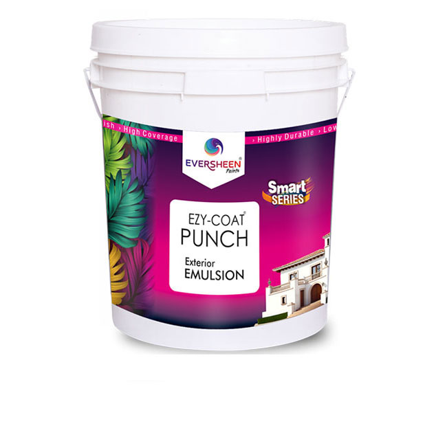 A water based acrylic binder exterior emulsion which is suitable for moderately humid climatic conditions. EZY-COAT PUNCH weather guard properties resist chalking, cracking, and weathering as opposed to distempers & cement paints. With this exterior paint, get plastic paint-like finish which lasts longer than distemper.